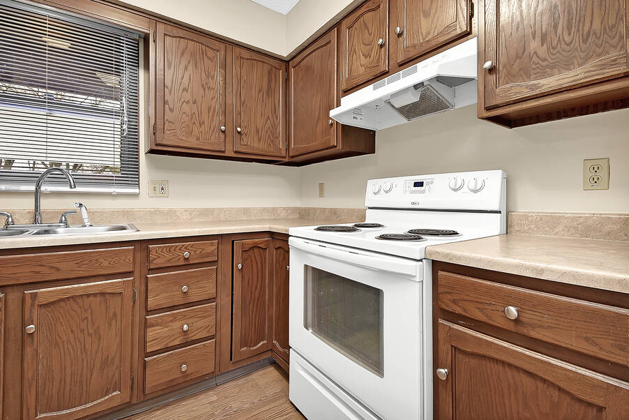 Kitchen | premium LVP flooring (not shown in pictures), garbage disposal, and dining nook | Updated kitchens with fine oak cabinetry,
