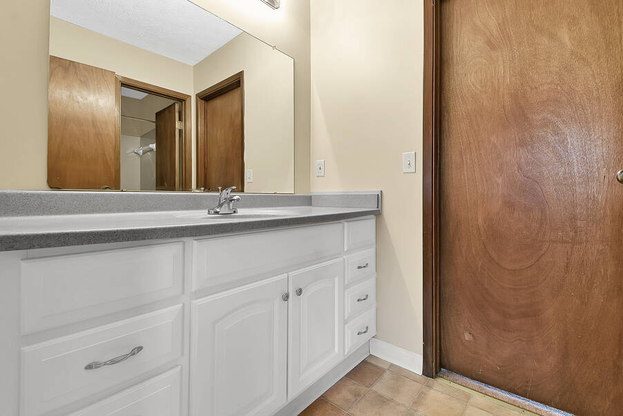 Bathrooms (1.5) | Updated white-wood cabinets with solid-surface countertops; 1 full bathroom upstairs and one half bathroom downstairs |